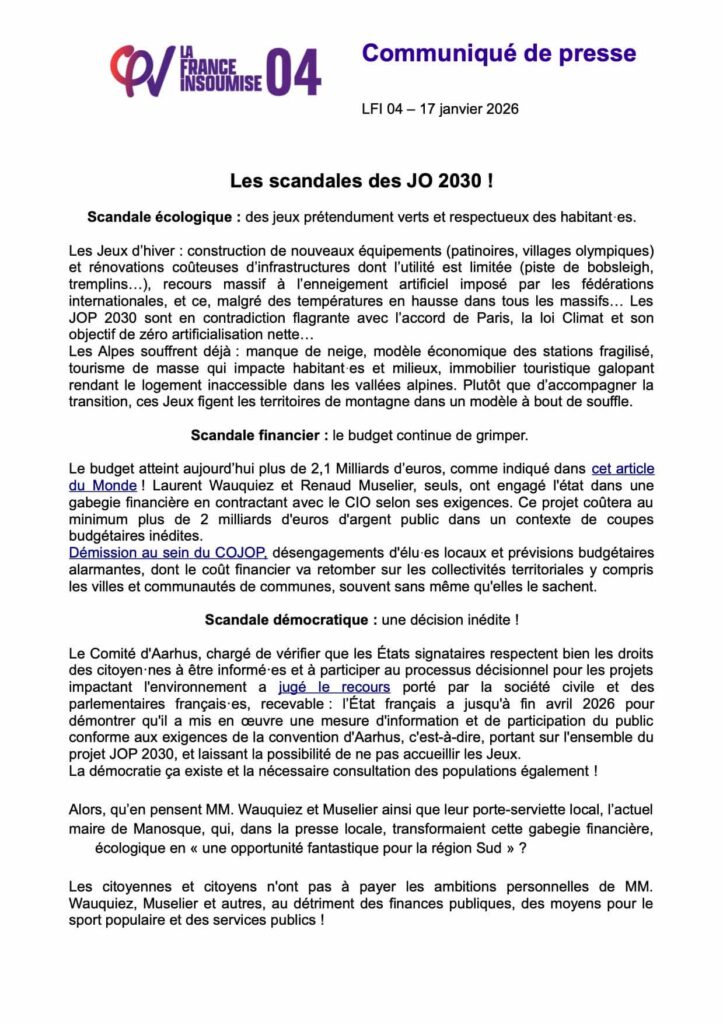 Les citoyennes et citoyens n’ont pas à payer les ambitions personnelles de MM. Wauquiez, Muselier et autres, au détriment des finances publiques, des moyens pour le sport populaire et des services publics !